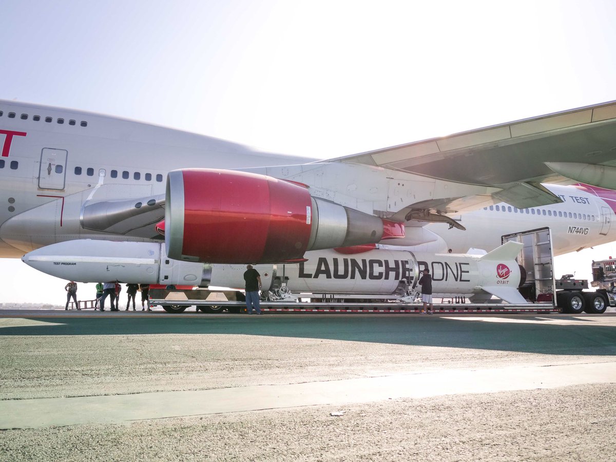 The attachment of a mounting bracket for Virgin Orbit's smallsat launcher under the wing of a modified passenger jetliner portends the start of a series of captive carry tests with a full-scale model of the rocket, culminating in a drop of the vehicle before the first orbital launch attempt.