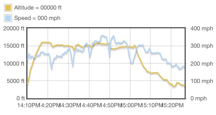 Flight track and altitude/speed plot of today's flight test (OBT01) of @Virgin_Orbit LauncherOne 747-400 carrier aircraft #CosmicGirl with pylon attached as well as rocket test article (photo via @zia_aero and figures via @flightaware)