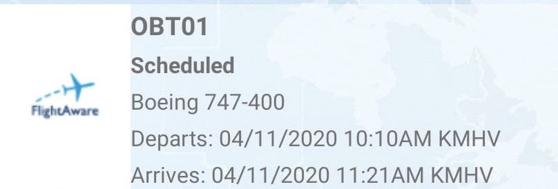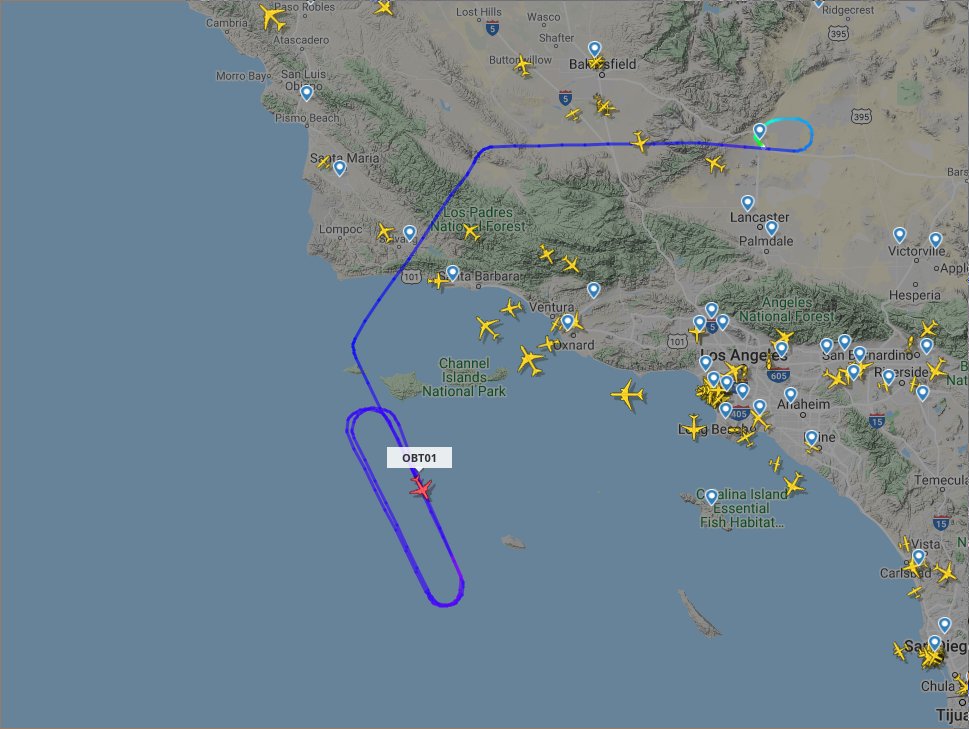 Virgin Orbit's Cosmic Girl launch plane rehearsing the drop pattern for the planned Launcher One flight  - from FlightRadar24