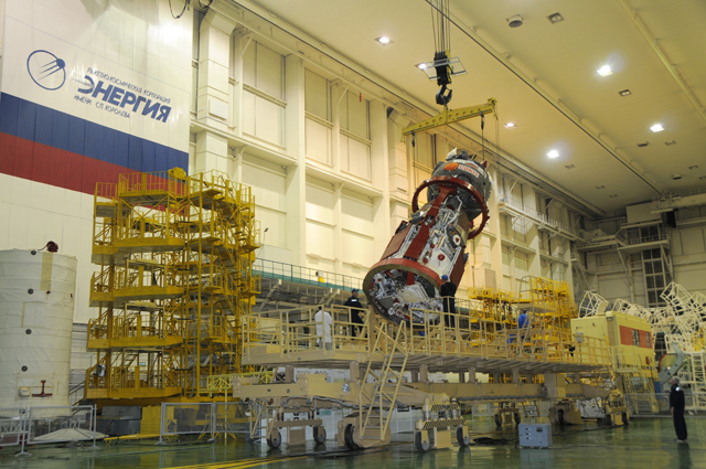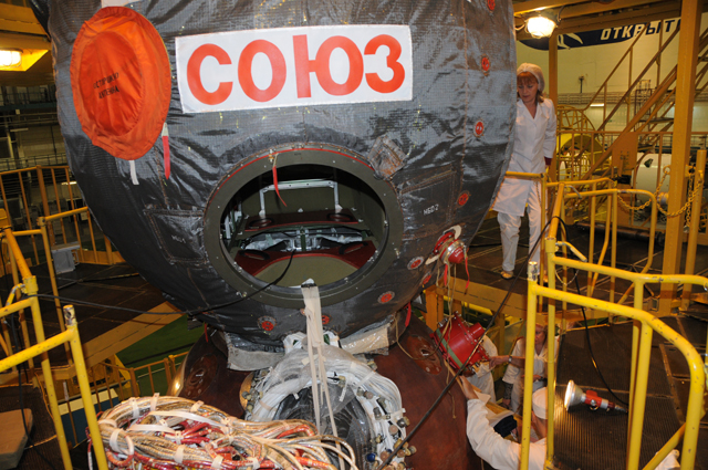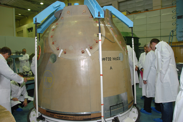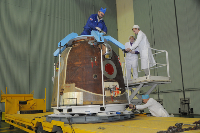 Специалисты РКК "Энергия" завершили на корабле замену спускаемого аппарата (СА) на СА, доставленный в МИК КА два дня назад.