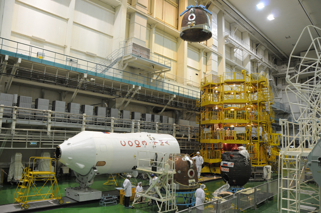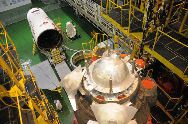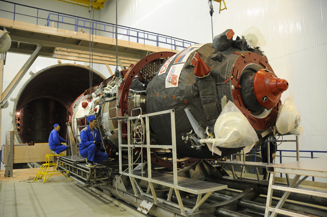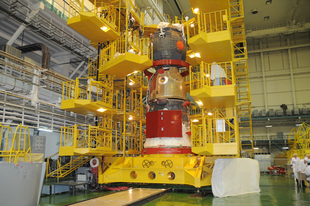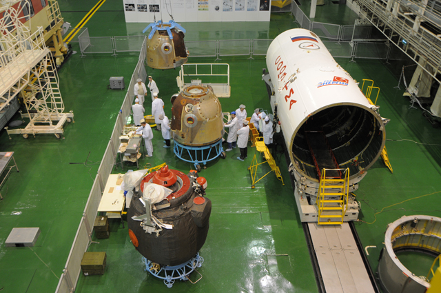 В монтажно-испытательном корпусе космических аппаратов (МИК КА) филиала "Байконур" продолжаются работы по графику подготовки корабля "Союз ТМА-20".