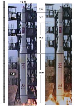 В ходе этого старта международному сообществу была представлена обширная видеоинформация, что позволило выявить тактико-технические характеристики ракеты. Она имела длину 30 м и стартовый вес 80 тонн. Вновь первая ступень ракеты представляла собой связку из четырех двигателей типа «Нодон». Вторая ее ступень оказалась похожей на ранее описанную советскую ракету Р-27, третья – на «Хвасон-5» («Хвасон-6»).