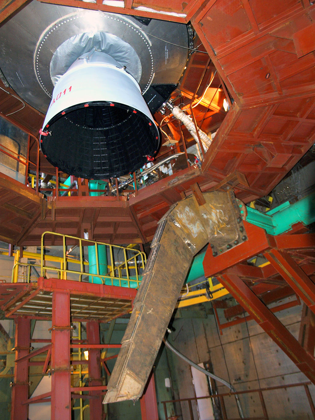 Стенды бывают разные. Одни для испытаний двигателей (вертикально, горизонтально, наклонно). Другие для испытаний ступеней ракет. И видов испытаний множество. Тот стенд, о котором идет речь, для испытаний именно ступеней.