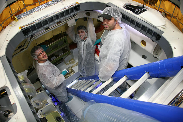 The astronauts grapple the payload in much the same fashion as Japan's HTV cargo ships, maneuvering the spacecraft on the arm and berthing it to the Earth-facing port of the Harmony connecting module.