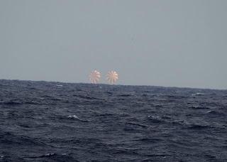 Место приводнения капсулы Dragon находится примерно в 400 морских милях (около 740 километров) к юго-западу от Лос-Анджелеса. В операции по "выуживанию" капсулы будут участвовать три спасательных судна, а его спуск в атмосфере будут отслеживать два специализированных самолета. Экипаж МКС вряд ли сможет увидеть момент входа корабля в атмосферу. Это будет происходить на дневной стороне планеты, где солнечный свет будет заглушать сияние раскаленной капсулы.