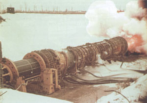 Испытания маршевого РДТТ в газодинамической трубе на Павлоградском полигоне.