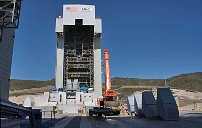The SLC-6 pad at Vandenberg, built to support the space shuttles, was ideal for accommodating the Delta 4-Heavy. But engineers liken the complicated machine to launching three rockets at once, and an enhancement to the ground servicing systems was necessary.