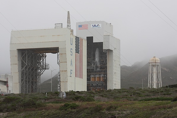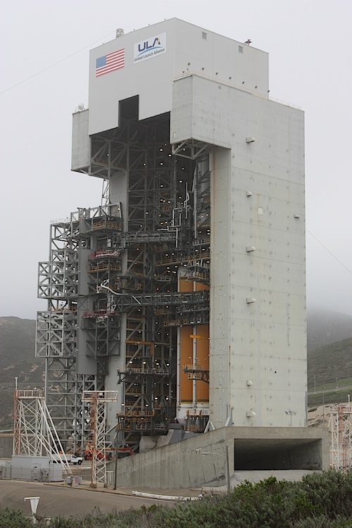 Space Launch Complex 6 completely encloses the Delta 4-Heavy rocket during pre-flight preparations. Credit: Justin Ray/Spaceflight Now