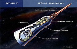 Космический корабль «Аполлон» состоит из командного и служебного отсеков, лунного модуля и системы аварийного спасения.