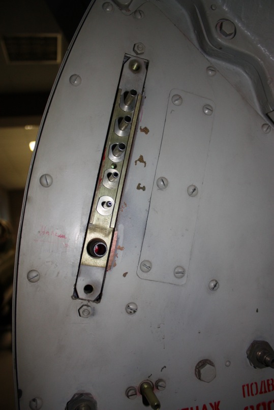 Пневморазъмы (большого диаметра) и гидроразъемы Зенитовского установщика. Стыковку этих разъемов нам не до конца показали в фильме про вывоз РКН Зенит-3Ф