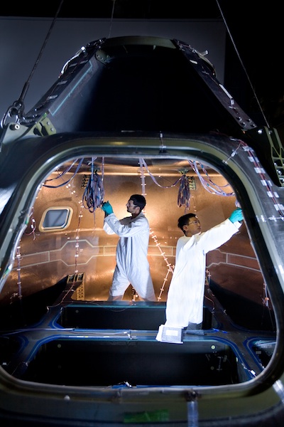The composite crew module was built by ATK at its Iuka, Miss., facility as part of an earlier NASA program headed by the agency's Langley Research Center in Hampton, Va. from 2007 to 2010. The program aimed to assess whether composite materials were a viable alternative to aluminum lithium on NASA's Orion Multi-Purpose Crew Vehicle which is being built for future manned exploration flights to deep space.