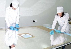 Есть еще одна особая космическая область — солнечные батареи. В этой сфере «Технология» работает с НПО им. С.А. Лавочкина и компанией «Сатурн» (Краснодар) — это передовое предприятие в области фотоэлектронных преобразователей. Тройственный союз дает удивительный результат. Научный центр Лавочкина отвечает за новейшие идеи по системе раскрытия и зачековки солнечных батарей. Краснодарская компания разработала электронную «начинку» весом всего лишь в килограмм на квадратный метр (у конкурентов речь идет о 1,6­-1,8 кг). А «Технология» смогла сделать каркас весом в 480 г на квадратный метр. То есть общая конструкция «обошлась» всего в полтора килограмма — а это технологический прорыв. Итог работы — 30% энергии солнца превращаются в электроэнергию при минимально возможной массе батареи.