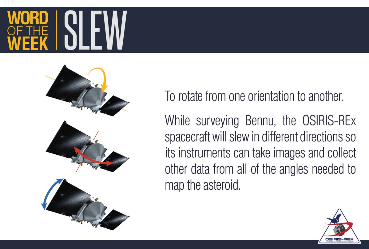 For the next 12 mins, I'll slowly slew, or rotate, so that the navigation cameras are looking at Bennu. I need a good view of Bennu's landmarks to understand where I am. This navigation technique is called Natural Feature Tracking (NFT) - read more here: https://bit.ly/2XGYYhI