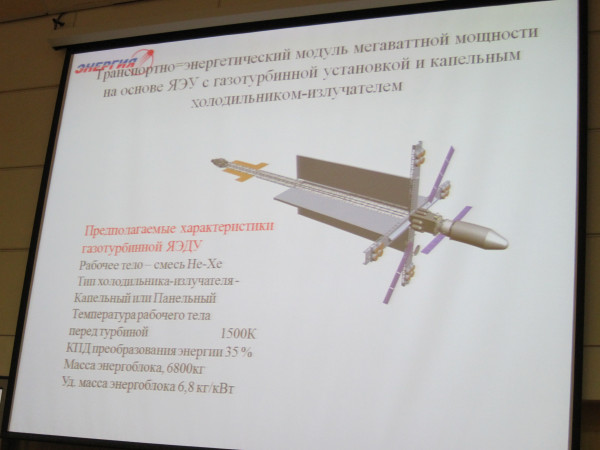 На картинке из презентации с прошлого года видно, что масса енергоблока будет 6800кг, уд. масса 6,8Кг/КВт и рабочые тело He-Xе,  на ТЕМ-1 МВт.