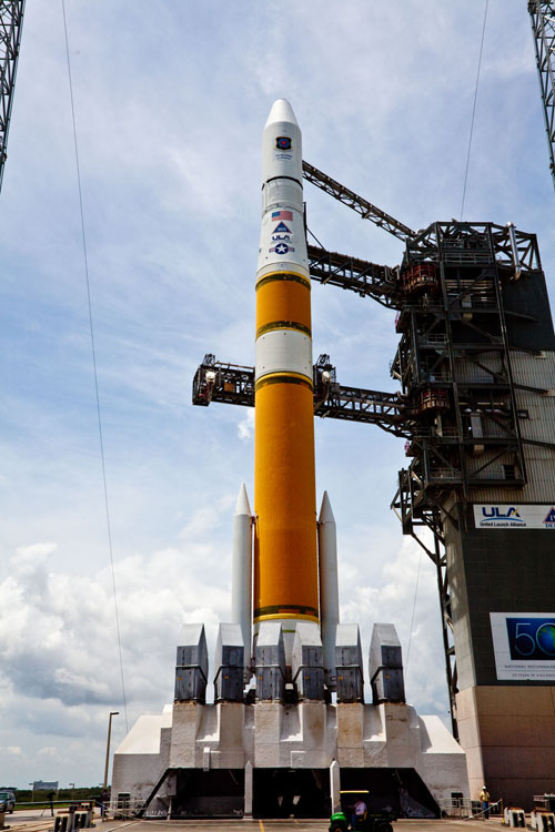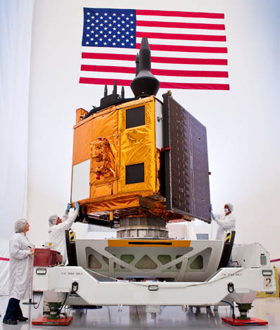 A file image shows satellite payload ready for lifting into the Delta 4 rocket's launch pad. Credit: NASA