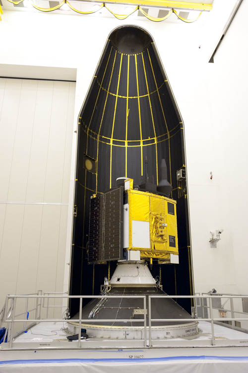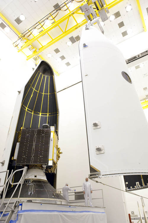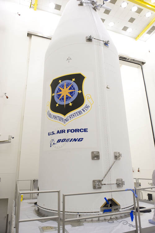 Check out this photo gallery showing the GPS 2F-2 satellite being encapsulated in the rocket's nose cone last month.