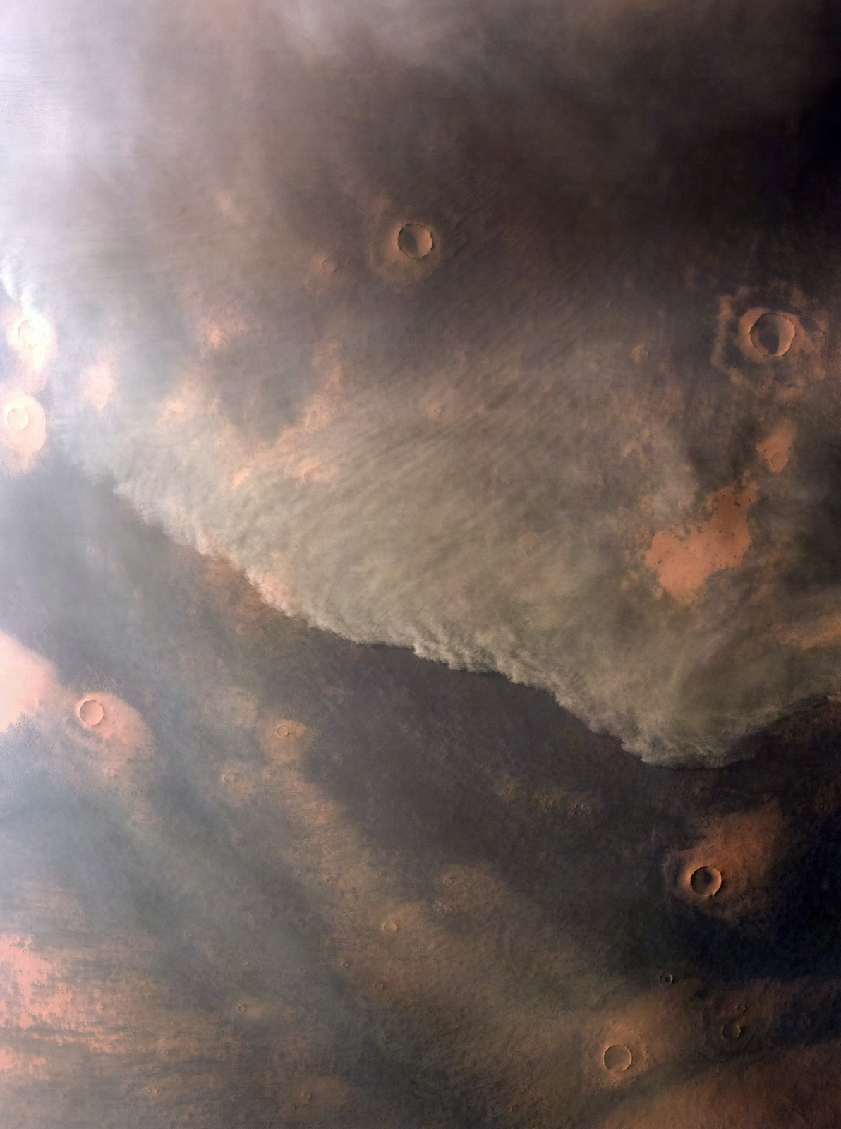 Марс - Массивная пылевая буря надвигается на могущественный Олимп Монс (уже прошла, прим мое.)