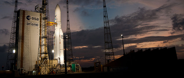 This clears the way for Ariane 5's rollout tomorrow, readying the vehicle for its liftoff from French Guiana on Tuesday, September 20, during a launch window that opens at 6:38 p.m. and continues to 8:02 p.m. local time.[/size]