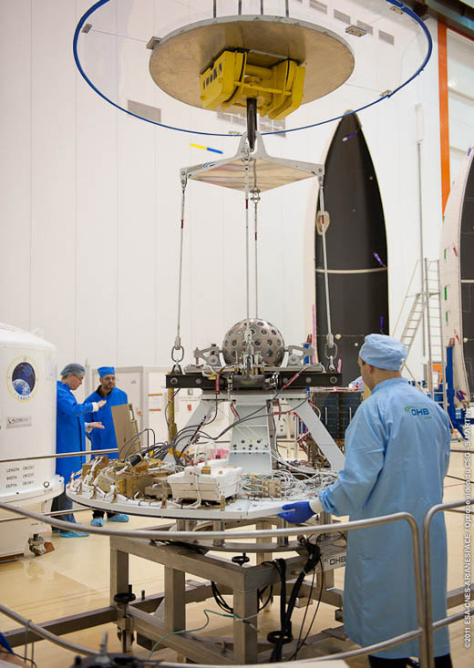 This photo gallery shows LARES being installed aboard its deployer system in the processing facility. Once the other CubeSat co-passengers are attached, the payload package will be encapsulated in the rocket's two-piece nose cone in preparation for attachment atop the Vega rocket next month. Liftoff is targeted for the end of January.