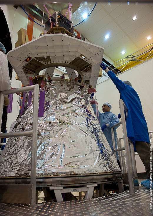 The campaign will continue in January with the integration of the 'upper composite' – the fairing and payload – followed by final check-out of the fully integrated launcher and the countdown rehearsal.