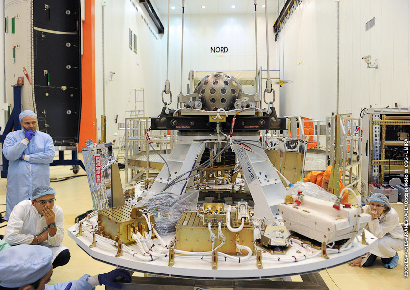 Согласно предоставленным данным, в рамках первого полета Вега выведет на орбиту спутники LARES, ALMASat-1 и семь микроспутников CubeSat. В понедельник и вторник на этой неделе инженеры завершили сборку головной части ракеты, где находятся все спутники адаптеры для них. Сейчас специалисты проверяют электрические компоненты и соединения внутри ракеты.