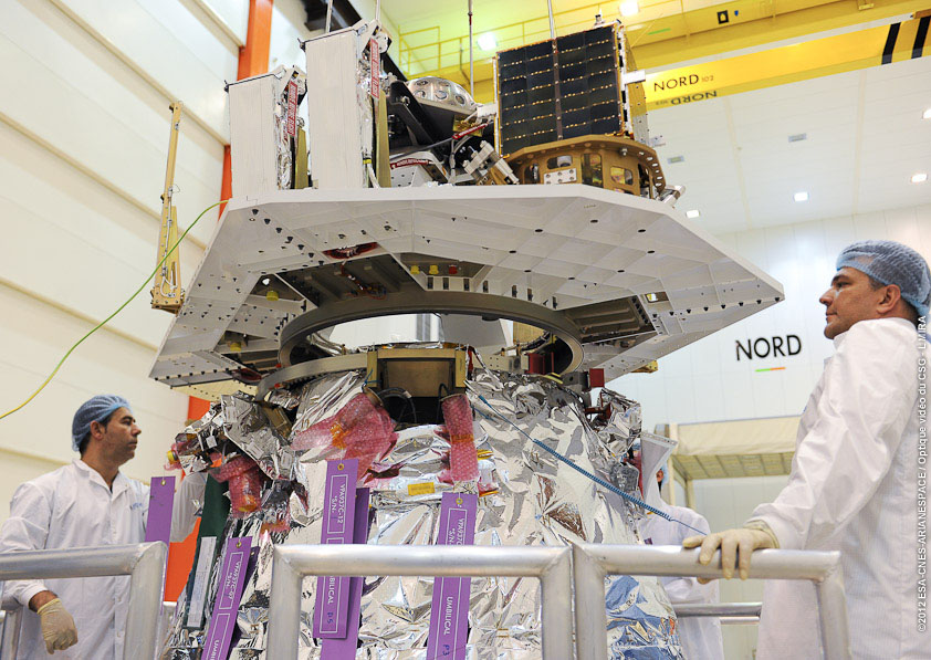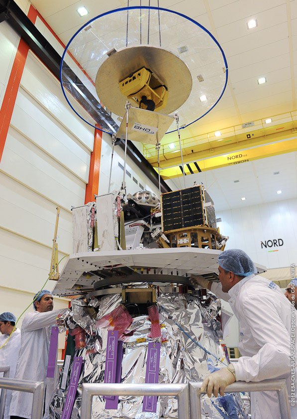 The composite was then added on top of Vega's AVUM fourth stage to finalise electrical connections and verify links, concluding with the final mechanical connection.