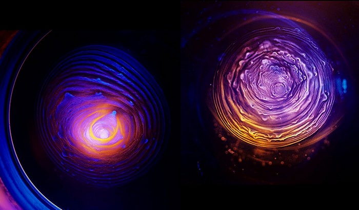 О человеке, который стал слишком увлекаться алкоголем, говорят, что он повадился "заглядывать в бутылочку". Это увлечение разделяет и фотограф по имени Эрни Баттон (Ernie Button), разве что заглядывает он не в бутылочку, а в бокал, да и бокалы предпочитает пустые и немытые. Вооружившись фотоаппаратом с макрообъективом, Эрни Баттон фотографирует посуду, в которой был односолодовый скотч. Испаряясь, напиток оставляет на стенках весьма живописные разводы, и если приукрасить их разноцветной подсветкой, то в объектив можно увидеть марсианские пейзажи, неизвестные планеты и галактики, длинные огненные туннели к самому центру земли, а рядом с ними - обледеневшие дороги в царство вечного снега. Красочный арт-проект получил название Vanishing Spirits.