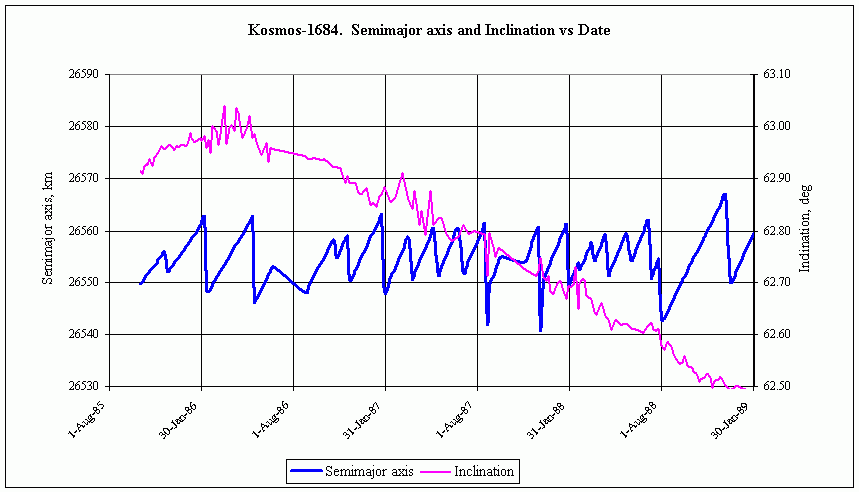 Относительно наклонения. Как видно из ТЛЕшек,наклонение меняется, но не столь уж сильно. Да и дрейф ДВУ, как вы можете видеть из графика, не очень сильно отличается от линейной функции времени.