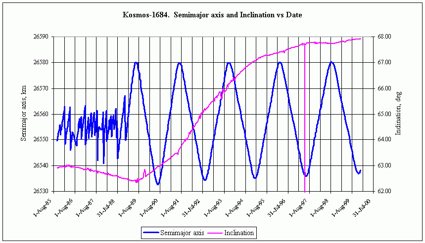 Посмотрел ТЛЕшки. Точно! Да этот Космос-1684 уникум! У всех его соседей наклонение увеличивается а у него уменьшается! Чудны дела твои, гравитация! :)