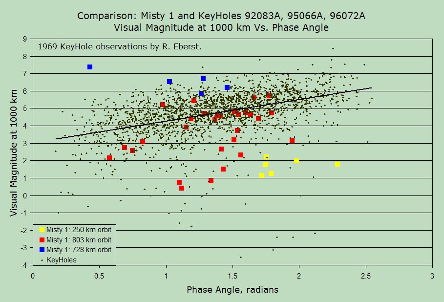 Since Misty 1 is thought to be a stealthy version of a KeyHole, I have produced a couple of comparison plots.