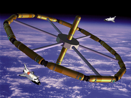 Если через радиальные трубы, то кто их туда, на орбиту затащит и как? Опять наполеоновщина.
