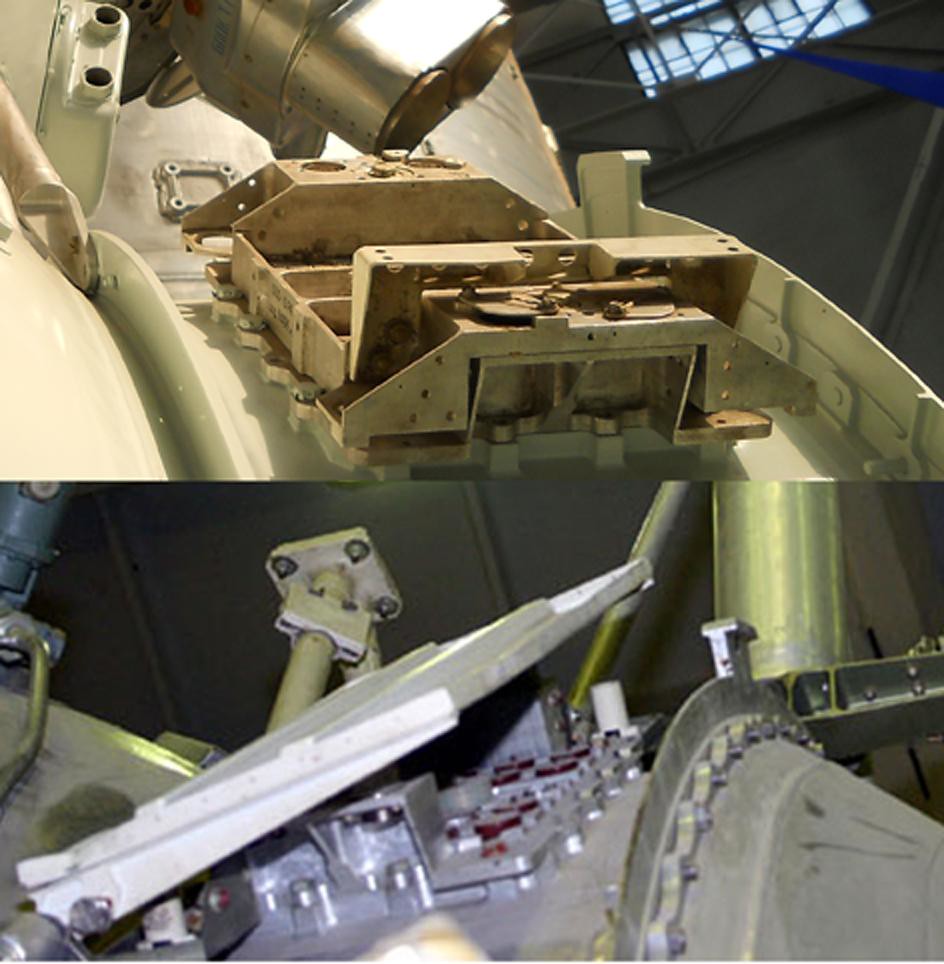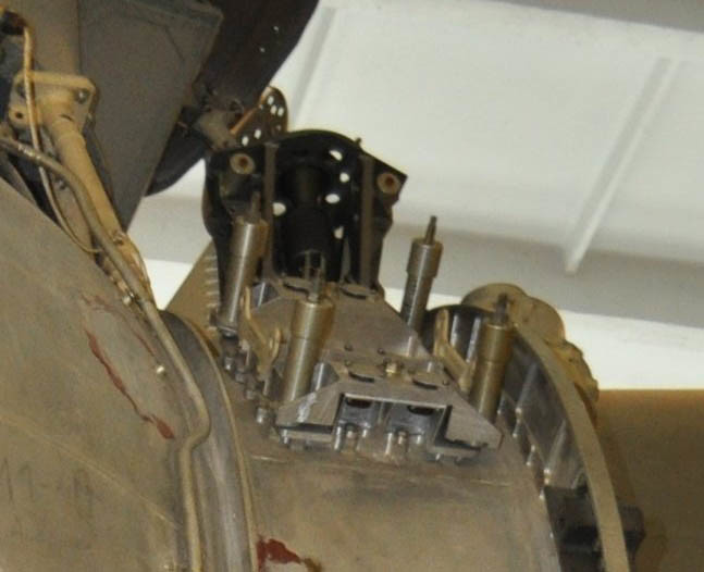 In this photo what are the four long pins seen holding the four corners? Could these be spring-loaded pyrobolts designed to release this part and throw it to the side?