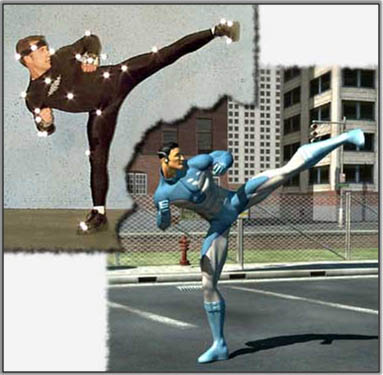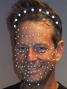 Есть технология называемая motion capture ( ссылка ), чтобы записывать положение тела человека и переносить его на компьютерные модели. По этой технологии уже лет десять делаются игры и фильмы. На человека надевают светящиеся шарики или наклеиваются специальные маркеры светящиеся в инфракрасном свете, ставятся специальные видеокамеры с большим разрешением ( 3600x3600 пикселей ) и большой частотой кадров ( 480 кадров в секунду ). Записывают положения маркеров и по нескольким камера определяют их положение в трёхмерном пространстве. А по этому положению определяют положения точек тела, которое придаётся компьютерной модели.
