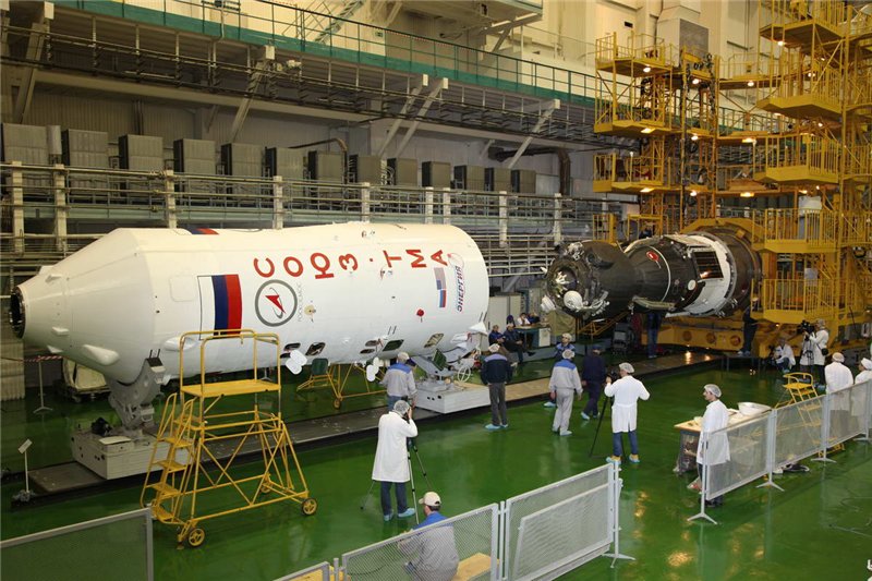 На космодроме Байконур продолжается подготовка к запуску ракеты космического назначения «Союз-ФГ» с транспортным пилотируемым кораблем «Союз ТМА-03М».