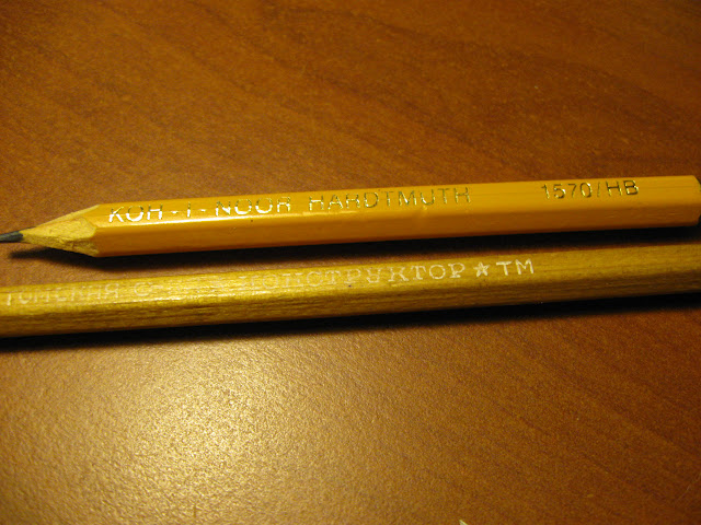 Обещанные вчера карандаши "Кремль". Верхний - простой карандаш 1988 г.