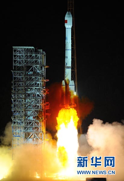 The satellite, lifted by a Long March-3B rocket carrier, blasted off from the center at 0:33 a.m. and successfully entered the preset orbit, sources with the center said.