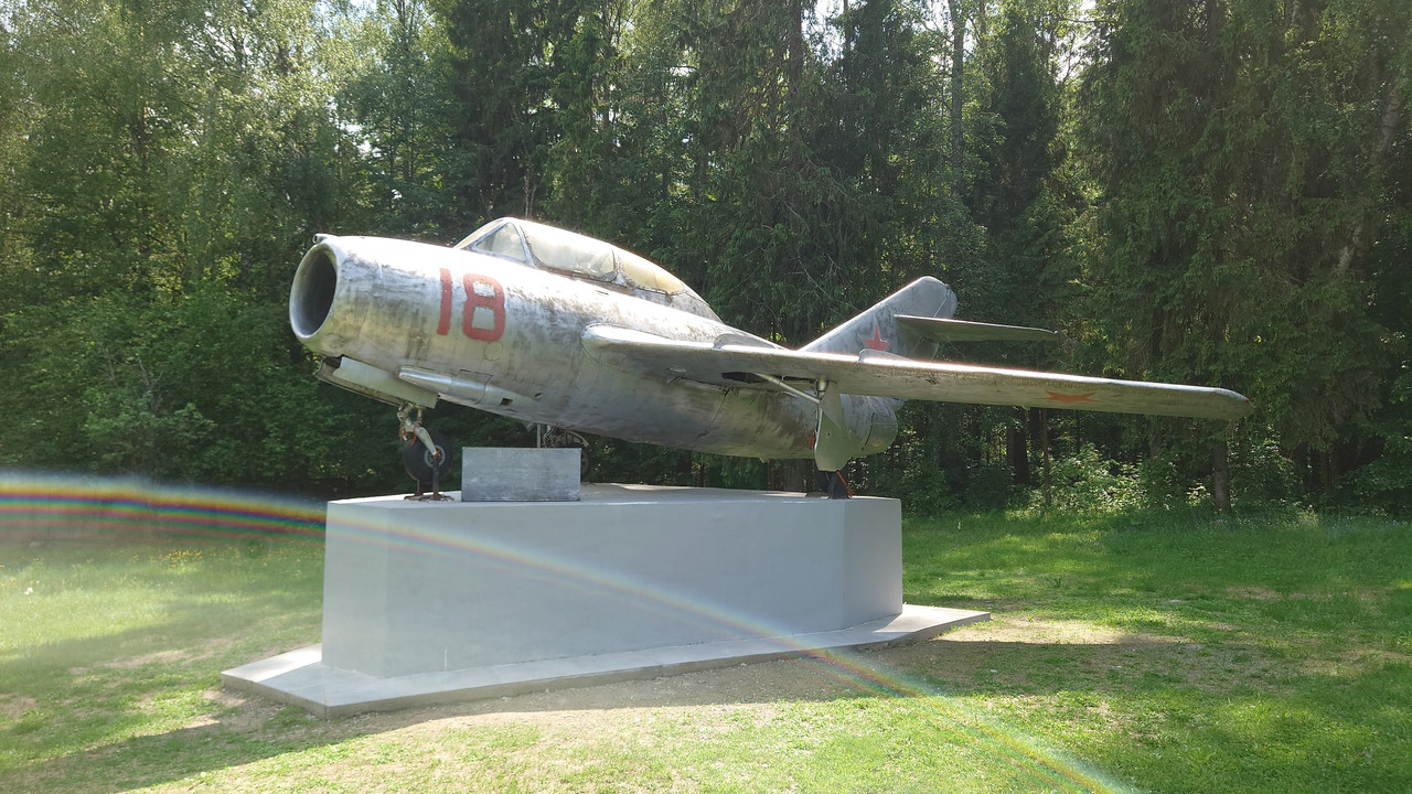 Там же потихоньку доживает своё МиГ-15УТИ, заменённый в мемориале несуразным истребителем.