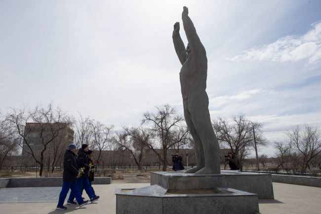 Вспоминали сегодня Юрия Гагарина и Владимира Серёгина и на космодроме Байконур. Делегация во главе с Героем России, лётчиком-космонавтом РФ, командиром отряда космонавтов Олегом Кононенко, а также дублирующим экипажем в составе Сергея Кудь-Сверчкова, Сергея Микаева и Кристофера Уилльямса возложила цветы к памятнику первому космонавту в истории человечества.