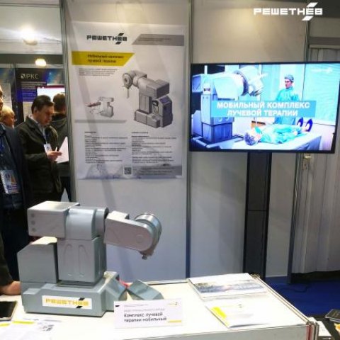 На салоне «Архимед» представлена ещё одна разработка решетнёвцев – промышленный образец «Комплекс лучевой терапии мобильный». Это медицинский аппарат для применения при интраоперационном лечении онкобольных. К преимуществам данного медоборудования относится высокоточная система позиционирования, безопасное фоновое излучение, а также мобильность, благодаря чему комплекс возможно транспортировать между помещениями.