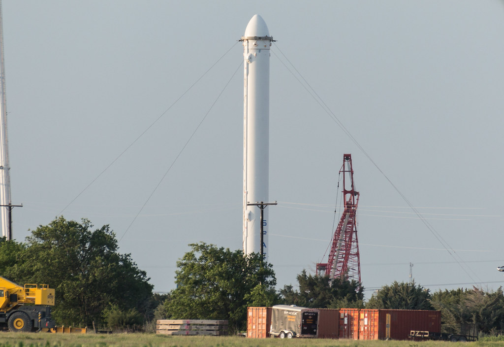 As SpaceX continues to make excellent progress on rebuilding SLC-40 at the Cape Canaveral Air Force Station, the company has achieved a major milestone toward the debut of its Falcon Heavy rocket.  With the first Falcon Heavy side core on the test stand at McGregor, Texas, SpaceX is in final preparation for the all important hot fire test of the booster before its shipment to the Kennedy Space Center ahead of a planned maiden flight later this year.