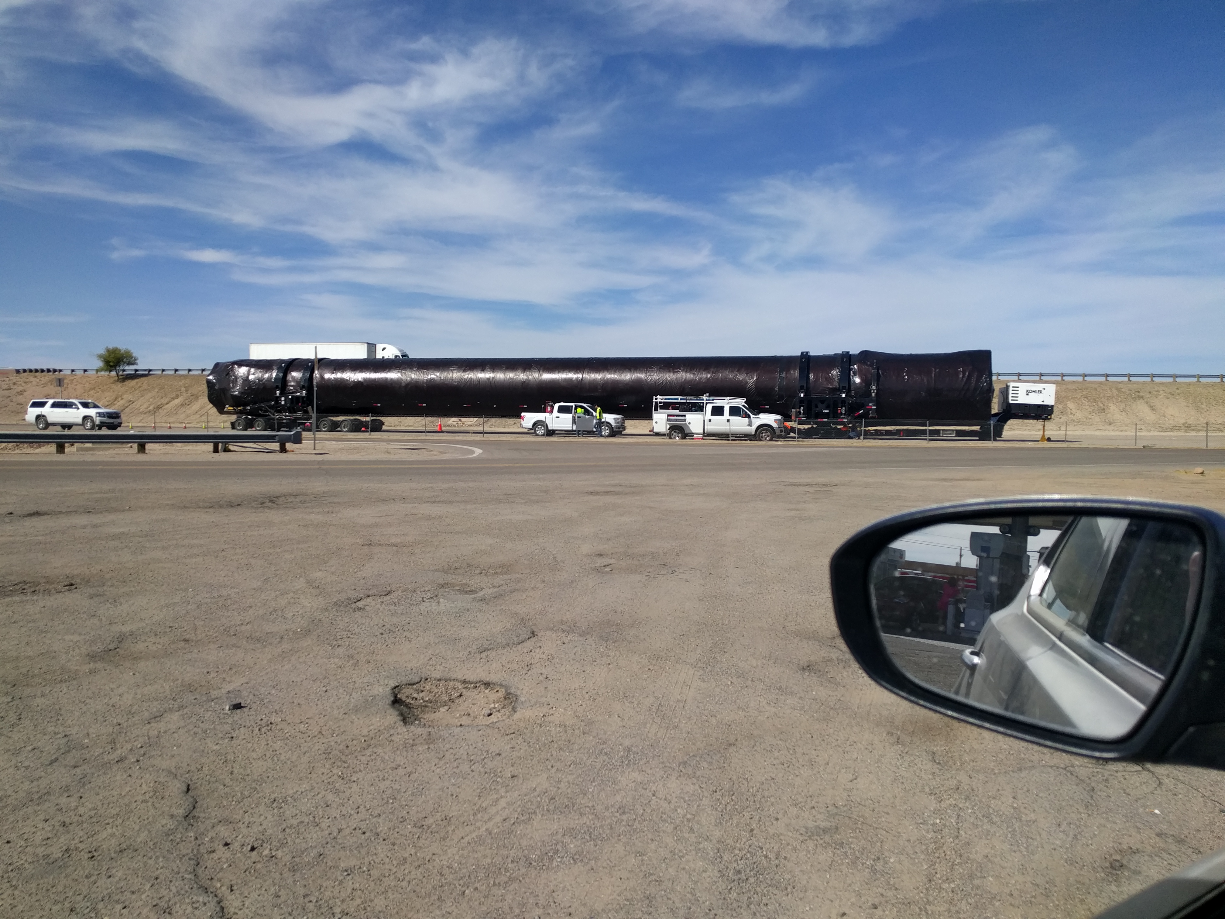 Earlier this year, the first side-mount booster – in reality, a regular Falcon 9 core with a nose cone on top – was seen in transit to the company's McGregor, Texas, test facility.