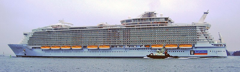 Такой вот кораблик. В высоту 72 метра в ширину - 60 метров, в длину - 362,8 метров. Даже поставленная вертикально Энергия будет намного ниже этого корабля. Либо её можно положить у него на палубе поперёк, и она не будет выступать за его края.