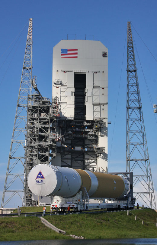 ЦитироватьDelta 4 rocket rolls out to launch pad[/size]