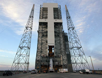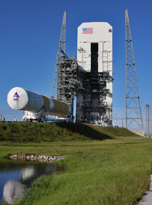 Over the next three months at Complex 37, a full pre-launch test program and the final rocket assembly steps will be carried out, including installation of the four strap-on solid-fuel motors to the first stage and attachment of the payload.