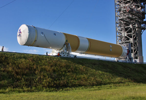 File image of Delta payload ready for hoisting into the pad tower. Credit: NASA