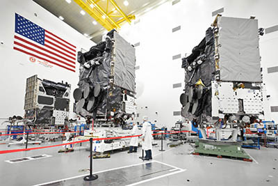 Three WGS spacecraft are operating in geosynchronous orbit today, and The Boeing Co. has four more in production at its El Segundo factory in Los Angeles. The craft are built upon the company's powerhouse 702-model design.