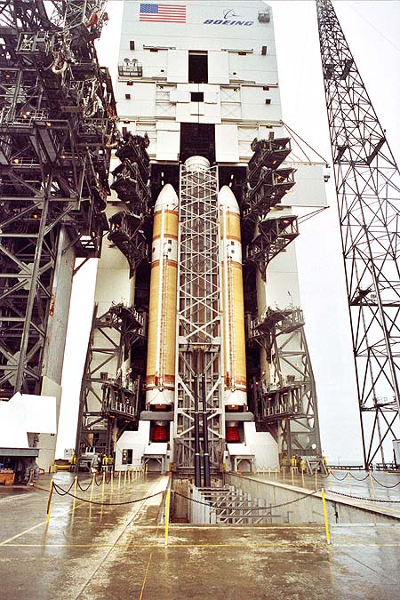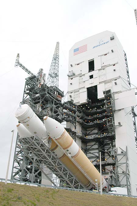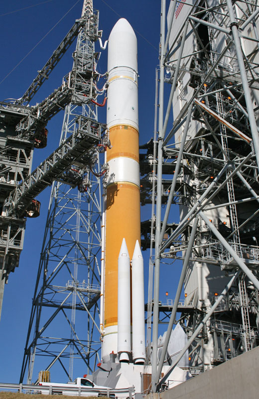 Getting the 6.5-ton craft into orbit is the mission for the powerful Delta 4 rocket, which began its pre-flight campaign at the launch pad this week.