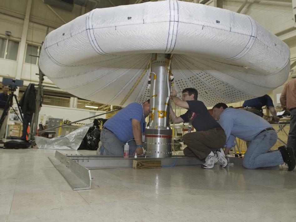 Technicians will vacuum pack the uninflated 10-foot (3.05 meters) diameter cone of high-tech inner tubes into a 22-inch (56 centimeters) diameter sounding rocket. During the flight test an on board system will inflate the tubes -- stretching a thermal blanket that covers them -to create an aeroshell or heat shield. That heat shield will protect a payload that consists of four segments including the inflation system, steering mechanisms, telemetry equipment and camera gear.