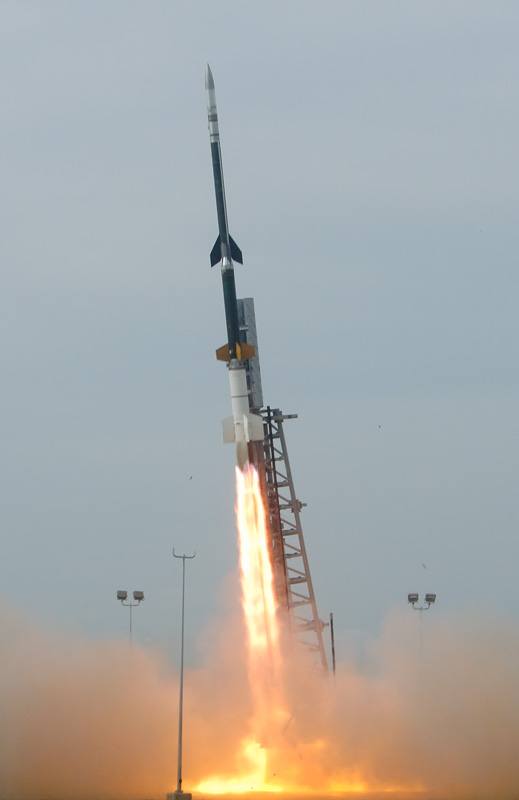 The 680-lb. flight demonstration payload lifted off at 7:01 a.m. EDT from Wallops Flight Facility atop a three-stage Black Brant sounding rocket that carried it to an altitude of 253 nm, where its onboard control system flipped it over and inflated its concentric-ring structure with nitrogen into a 10-ft.-dia. aeroshell covered with a four-layer thermal blanket.