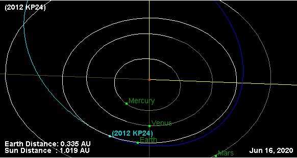 По данным астрономов, 28 мая, в 16.18 по Гринвичу (20.18 мск) 2012 KP24 пролетит мимо Земли на расстоянии 0,00037 астрономической единицы - 56,04 тысячи километров. Ученые оценивают диаметр этого небесного тела в 11-36 метров.